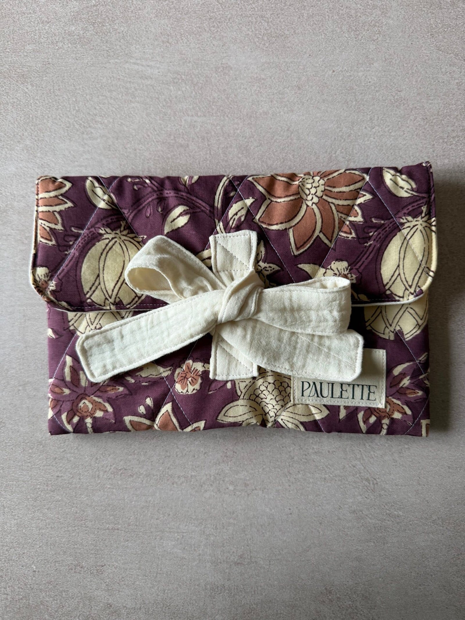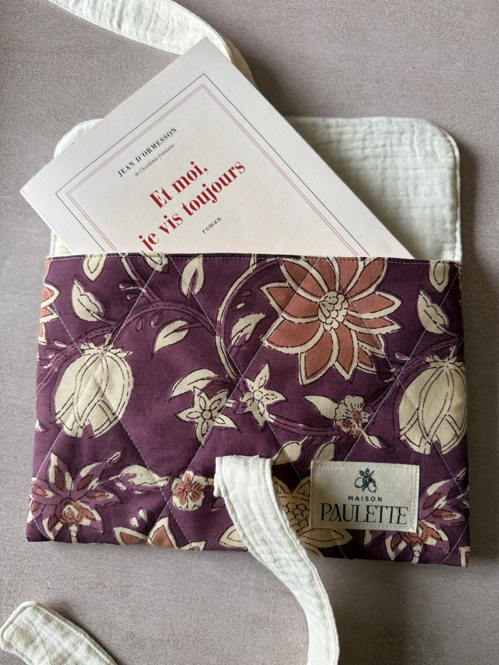 Une pochette de livre en coton indien mauve, chaleureuse et raffinée, pour protéger vos lectures avec style.