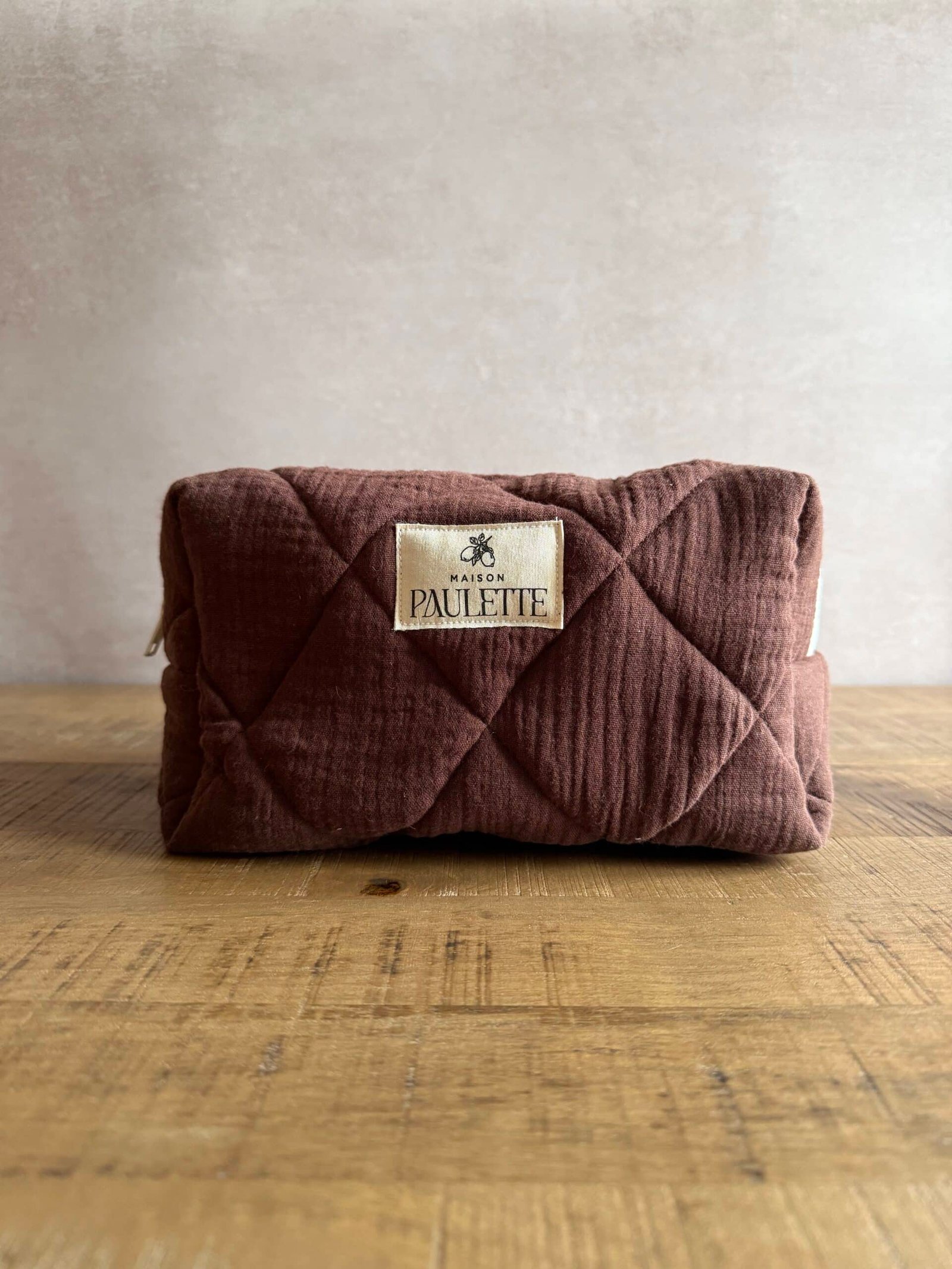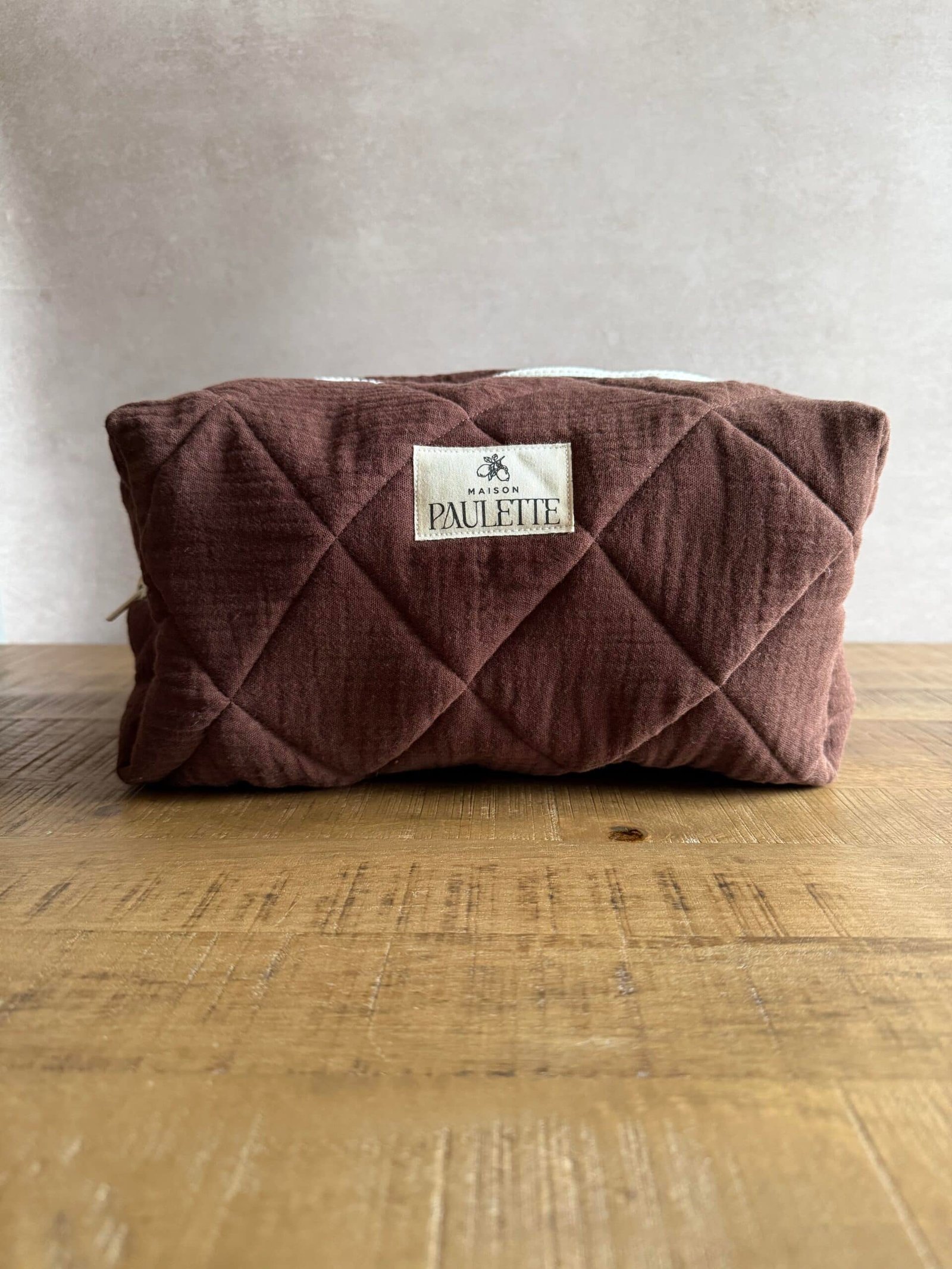 Trousse en gaze de coton matelassée marron